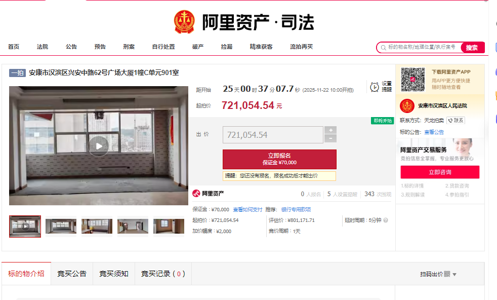 安康市漢濱區(qū)人民法院將于2025年11月22日10時至2025年11月23日10時止(延時的除外)在安康市漢濱區(qū)人民法院淘寶網(wǎng)司法拍賣網(wǎng)絡(luò)平臺上(網(wǎng)址:https://sf.taobao.com/0915/01)進行公開拍賣,現(xiàn)公告如下 :